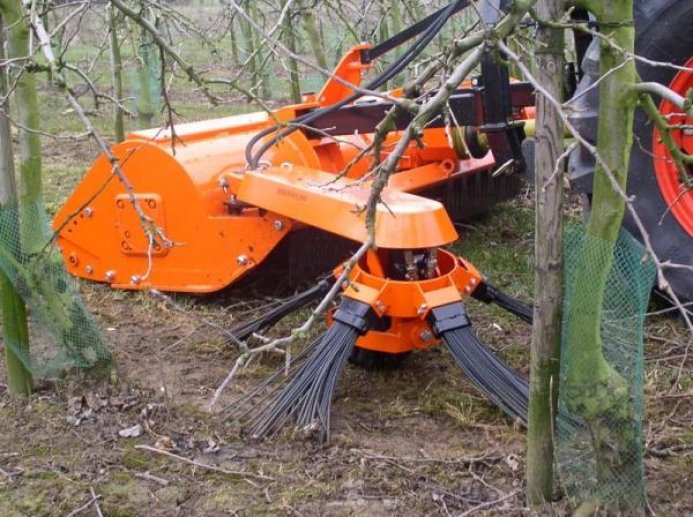L'andaineur Perfect est muni des balais élastiques et résistants en matière plastique qui ont été conçus spécifiquement pour lever les feuilles et le bois sans endommager le tronc des arbres fruitiers; les balais tournent à environ 150 t/mn. Son entraînement se fait par moteur hydraulique.