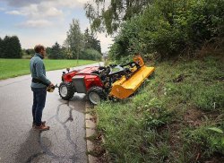 Mais le Metron P48 RC déploie ses atouts ailleurs que sur les terrains escarpés. Grâce au relevage standard de cat. I et à la prise de force mécanique hybride, il fait fonctionner tous les outils portés courants. On peut donc monter en toute simplicité les outils les plus variés : tondobroyeur, tondeuse à lame rotative, fraise à neige, lame à neige, balai et bien d’autres encore. Avec ses dimensions compactes et son poids propre de 1 000 kg environ, il se transporte facilement et est à son aise même dans des espaces restreints.